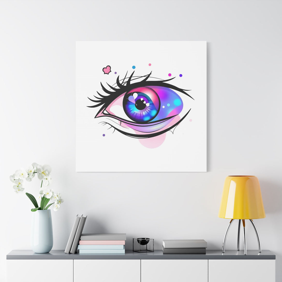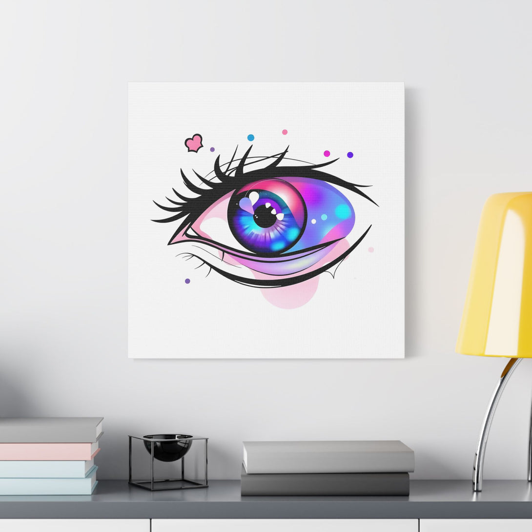 You know that feeling when you blink and see the world fresh for a second? That's Neon Heart Mirage. It’s like a little burst of a late-night daydream. The iris is all candy-bright electric blues and purples, with a hot pink flare that really pops. I kept the outline soft and sketchy to make it feel playful and spontaneous. Those tiny dots and the one little heart? They’re like random, happy thoughts drifting away from its gaze.